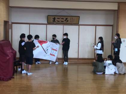 今朝の6年生の様子です。結団式直前、最後の確認です。緊張感がひしひしと伝わってきます。