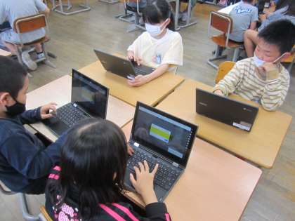 自分たちが目指したい姿について、クロームブックを使いながら考えを出し合いました。