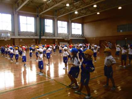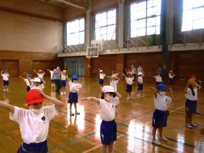 2年生と一緒に玉入れのダンスの練習をしました。楽しそうにダンスを覚えていました。