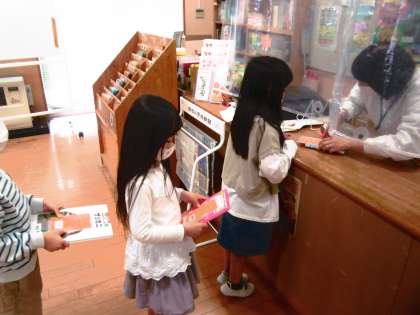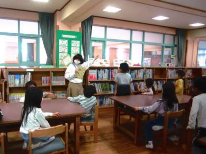 図書室の使い方を、司書の先生に教えてもらいました。早速一人一冊本を借りてみました。図書室を正しく使って、たくさん本を読んでくださいね。