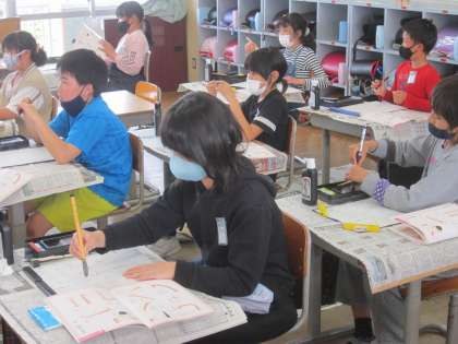 書写では、点画の種類について学習し、はらいやはね、止めなどの書き方に気をつけながら練習しました。