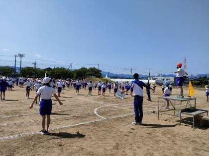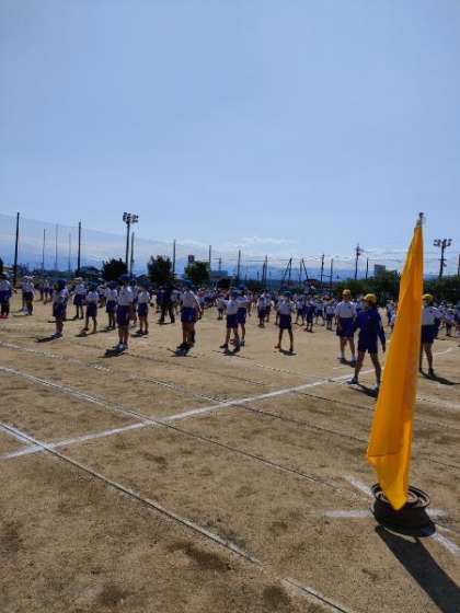 運動会の全体練習が始まりました。今日は、開閉会式の整列、ラジオ体操と歌の練習等を行いました。14日まで、わずかな練習時間しかありません。一時間一時間を大切にして練習に取り組みます。
