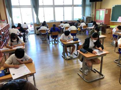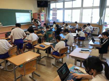 1組では、対称な図形のテストを行いました。2組では、クロームブックを用いて、問題を解きました。GWの宿題としても活用します。