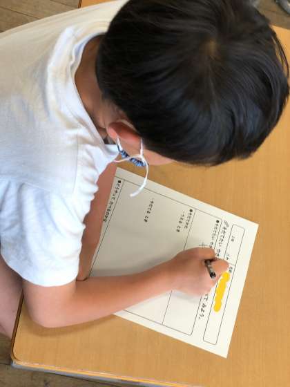 生活科の学習で野菜を育てる2年生。まずは育てる野菜について調べます。
