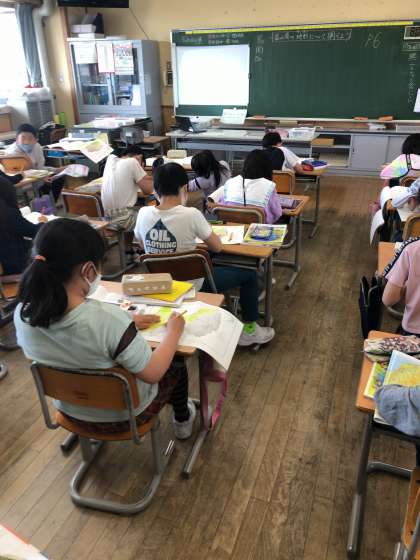 土地の高さに合わせて地図帳に色付けをすることで、富山県の土地の特徴について理解します。
