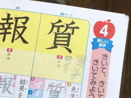 新しい漢字を学ぶとき、習っていない読み方を書き足したり、書くときに気を付けるポイントを書いたりしています。すばらしい。