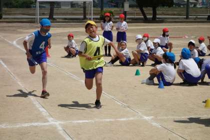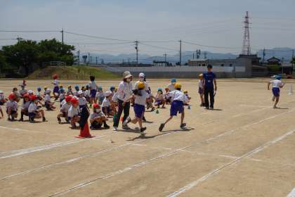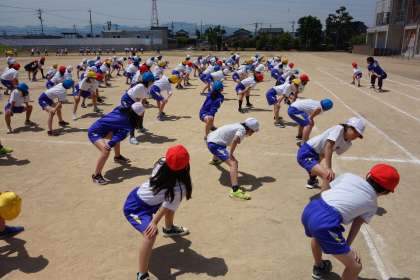 今日は、気持ちの良い青空のもとで練習ができました。入退場、整列共に上達してきました。