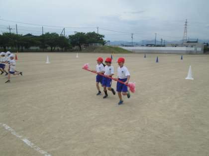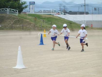 運動会練習では、中学年合同の団体競技「台風の目」の練習をしました。
