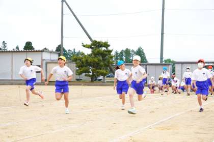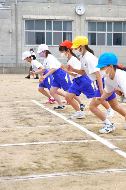 五回目の運動会になる5年生です。ゴールまで力いっぱい走りきりました。