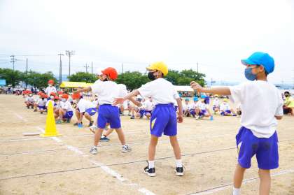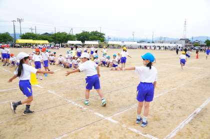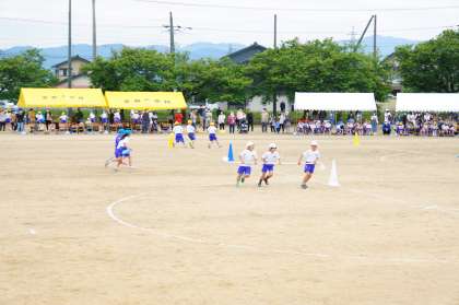 運動会での台風の目・中学年リレーの様子です。