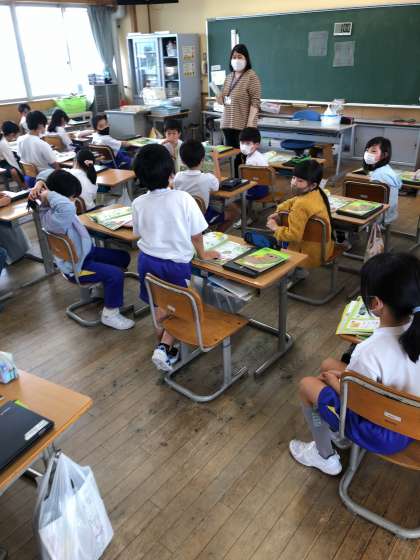 どこに卵がありそうかな? みんなで情報を共有していました。