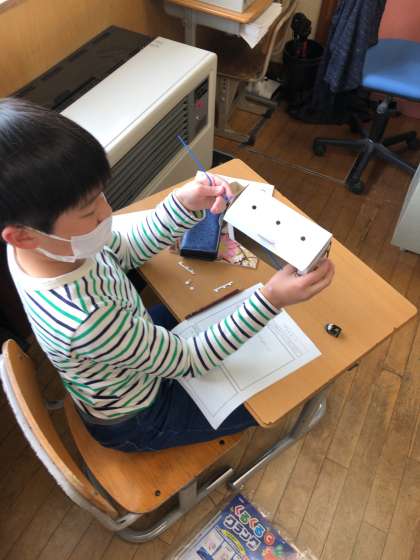 実際に組み立てたり、回してみたりして、自分がつくりたいもののイメージをふくらませました。来週までに必要な物を持ってきましょう。