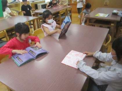 図書室が大好きな1年生。今日もたくさん本を読んでいました。