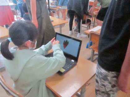 6年生に教えてもらいながら、クロームブックを使いました。アンケートに答えたり、イラストを描いたりするなど、楽しそうに使っていました。