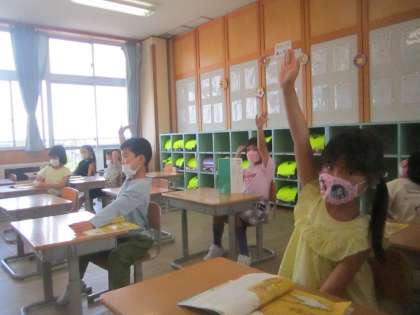 「はなのみち」の学習では、挿絵や文章から気付いたこと・考えたことを、積極的に発表しています。