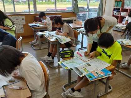 5年生は、社会科の学習で、日本の国土の地形の特色をまとめていました。