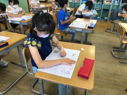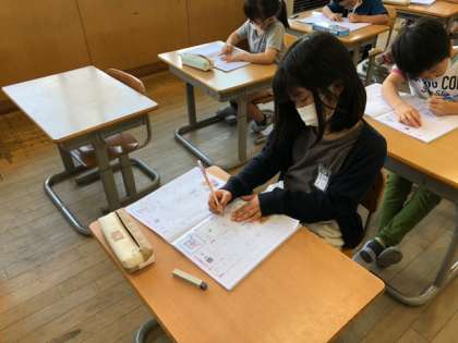 姿勢を正して、丁寧に漢字の練習に取り組んでいます。