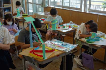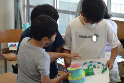 今日は実際にビー玉を転がしながら、コースを作りました。友達の作品に刺激を受けながら、自分の作品をよりよくしようとがんばっていました。