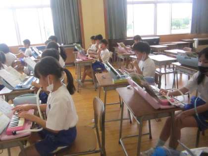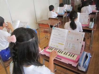 指番号に気を付けながら、鍵盤ハーモニカの練習をしました。音がそろってきて、すてきなメロディーを奏でていました。