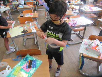 2年生 わっかをつくって変身しよう 〜図画工作科 わっかでへんしん〜