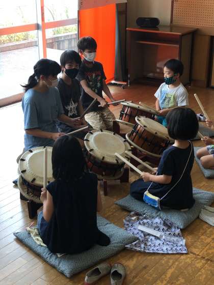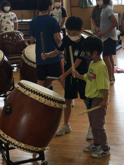 今日から太鼓げんキッズ活動がスタートしました。学校のリーダーとして、各チームで6年生は一生懸命に教えていました。