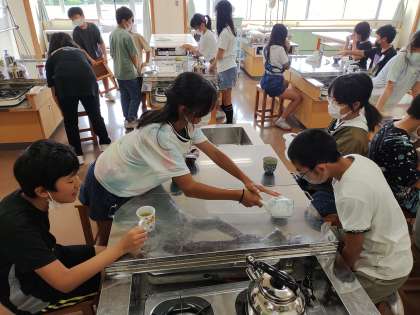 「家でもトライ」と題して、家族にもお茶を入れる機会をもつよう子供に伝えました。急須がないご家庭や、「うちは普段ティーバッグを使っている」「日本茶ではなくコーヒーを毎日飲んでいる」などといったご家庭もあると思いますので、臨機応変に対応していただいて構いません。お子様の実習の成果をぜひご覧ください。