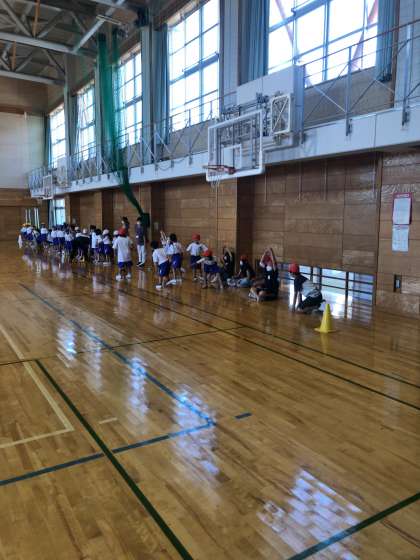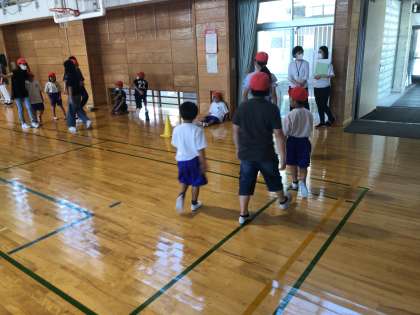 1年生が初めてシャトルランに挑戦しました。シャトルランのお手伝いをしました。線を踏んだか確認したり、走り終えた1年生の呼吸を整えるために一緒に歩いたりしたりと自ら考え行動する6年生が素晴らしかったです。