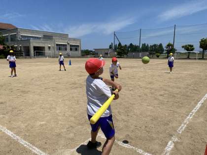 「もっと広がって!」「よく球見て!」「もう少し下に投げて!」子供たちの仲間への声かけが響いていました。少しずつ守備も攻撃も上手くなってきました。