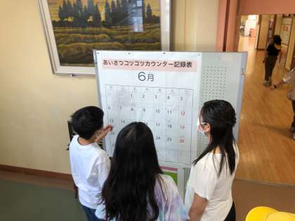 少しずつ、少しずつあいさつを積み重ねていきます。毎日の記録を書くスペースもできました。