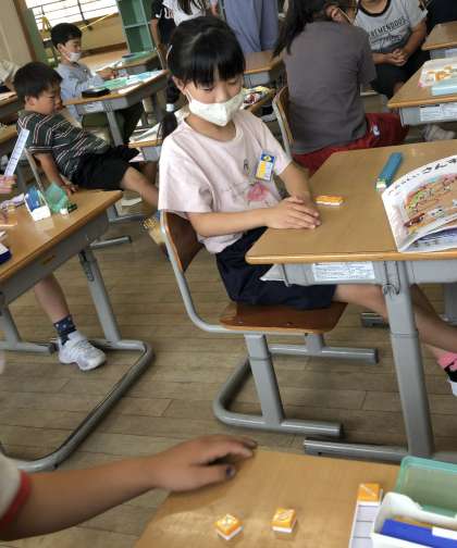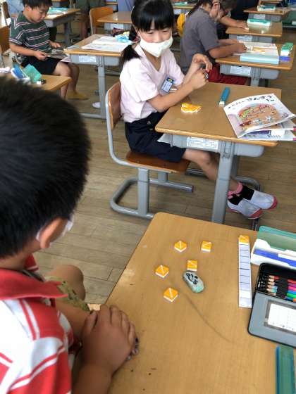 今日はペアで学習です。9はいくつといくつでしょうか。ペアで問題を出し合いながら理解を深めます。