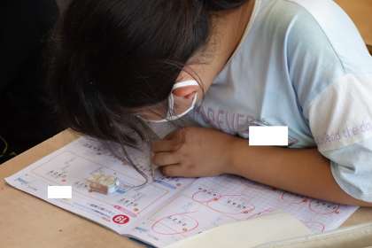割り算の筆算の練習を繰り返し行っています。どんどん要領をつかみ、早く正しく計算できるようになってきています。