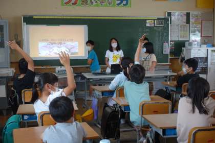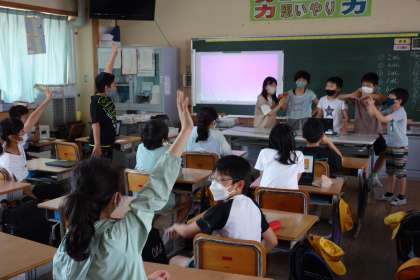 班で協力して作ったお楽しみスライドを発表し合いました。クラスの仲間と楽しい時間を過ごしました。