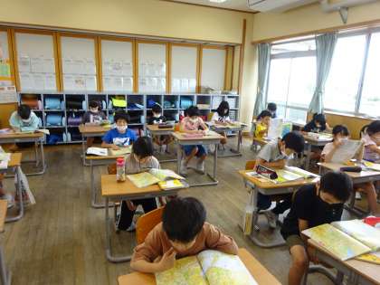 社会科では、授業の最初に地図帳クイズをしました。地図の読み方に慣れていくといいですね。