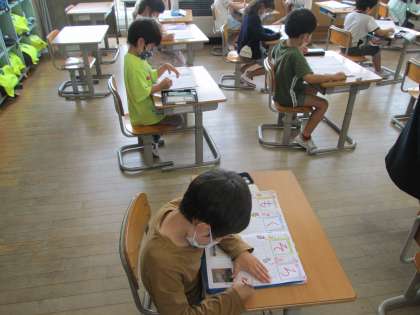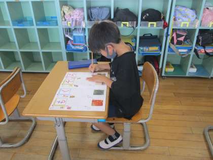 ひらがなの練習が進んでいます。姿勢、鉛筆の持ち方にも気を付けて、集中して書いています。