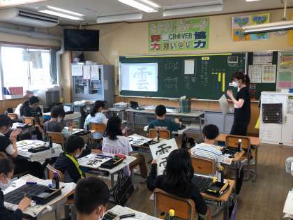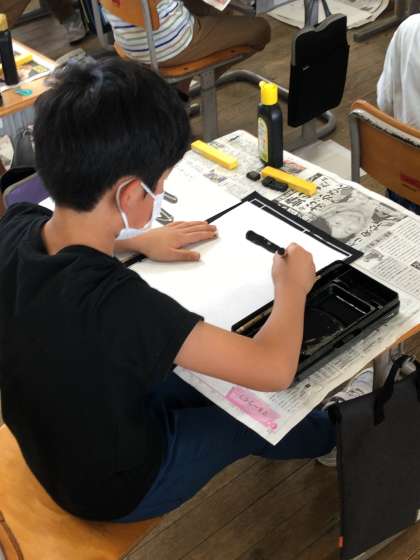 気合いの一言をつぶやき、書き始めました。上下の組み立て方を意識して書きます。
