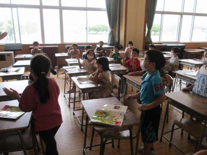 「タンタンタンウン」のリズムに合わせて、「○○さん」「はあい」のやりとりをする活動をしました。みんなから「○○さん」と呼ばれて、嬉しそうに「はあい!」と返事をしていました。