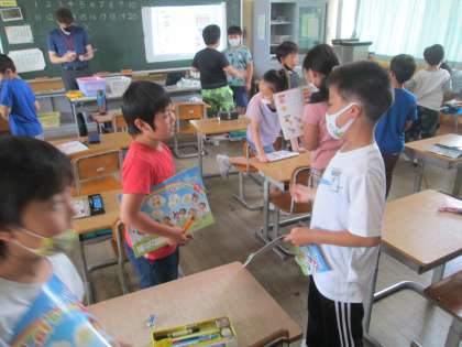 外国語活動では、じゃんけんをして回り、勝ち・負け・あいこの回数を記録しました。