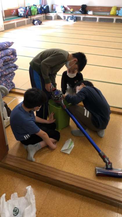 朝の準備が早く終わったので、子供たちは後で行う清掃活動に先に取り組んでいます。素早く行動することは、時間を生み出します。2日目の朝に、早速子供たちの成長を見つけることができました。