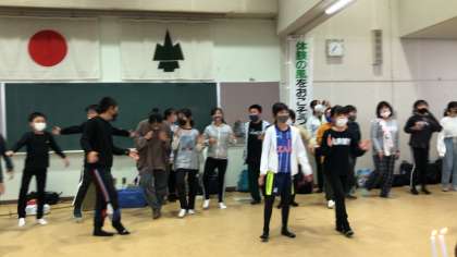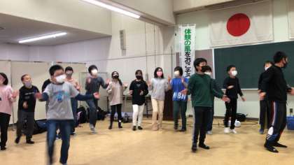 あいにくの天候のため、昨日の夜はキャンプファイヤーではなくキャンドルサービスを行いました。マイムマイムを楽しく踊る子供たちの様子です。