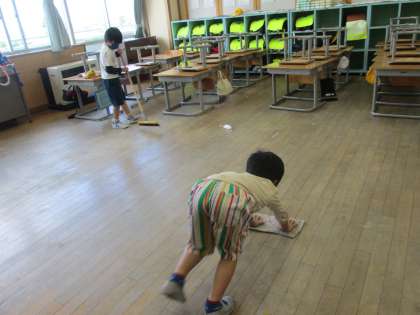 今日は、掃除の時間になる前から雑巾や箒を持ってきて、掃除をし始める子がたくさんいました。自分の担当場所をしっかりと掃除してくえたおかげで、いつもより早く掃除が終わりました。みんなで協力して、まじめに掃除することの気持ちよさや楽しさに気付くことができました。