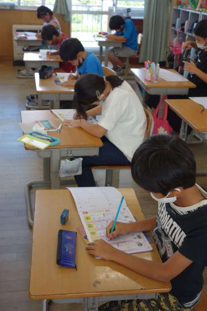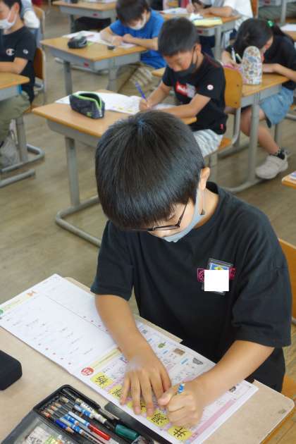 集中して漢字練習に取り組んでいます。4年生で習う漢字はかなり多いです。こつこつ練習していきましょう。