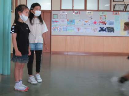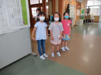 「あいさつをしながら走らないよ」ということで、朝、廊下であいさつをしました。