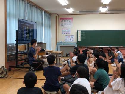 土曜日に行われた「富山市小学生陸上競技交流大会」の結果をみんなに伝えました。宮野小学校の児童が、100m走とコンバインドの種目で優勝を果たしました。みんなで拍手をし、その栄光を讃えました。