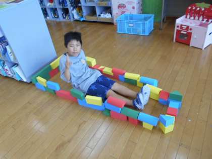 上級生に遊び方を教わったり、自分の作品をみんなに見せたりして、なかよしを深めました。