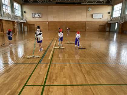 縦割り清掃のときの様子です。5年生が下学年を挟んで、掃除の仕方を教えていました。高学年として、自ら動いている姿が素敵でした。