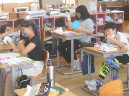 養護教諭の先生に教室に来ていただき、歯周病について話を聴いたり、歯周病菌の動画を見たりしました。そして、自分の歯肉を観察して健康かどうか確かめたり、正しい歯磨きの仕方を習ったりして、歯を健康に保つ方法を確認しました。