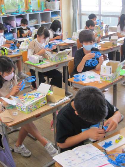 3年生のときの「回路」の学習を思い出し、モーターを回すことができました。