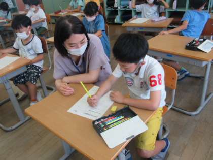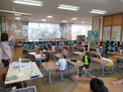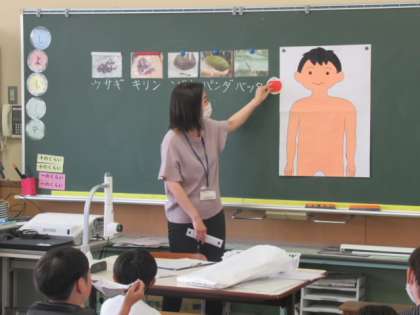 今日は保健の先生をお呼びして健康のためにバナナうんちを出すためにはどうしたらよいかを考える授業をしました。