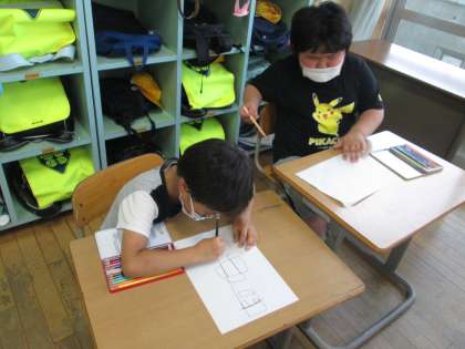 休み時間に、同じ学年の友達と遊んだり、絵を描いたりして過ごしています。どの子もとっても楽しそうです。