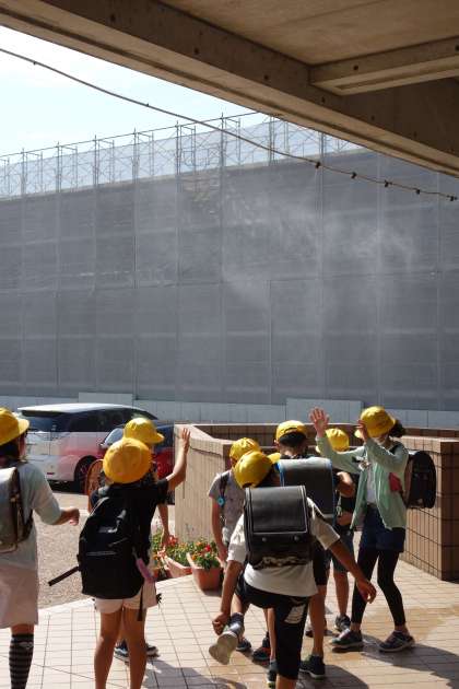 4年生 玄関前のミストシャワー